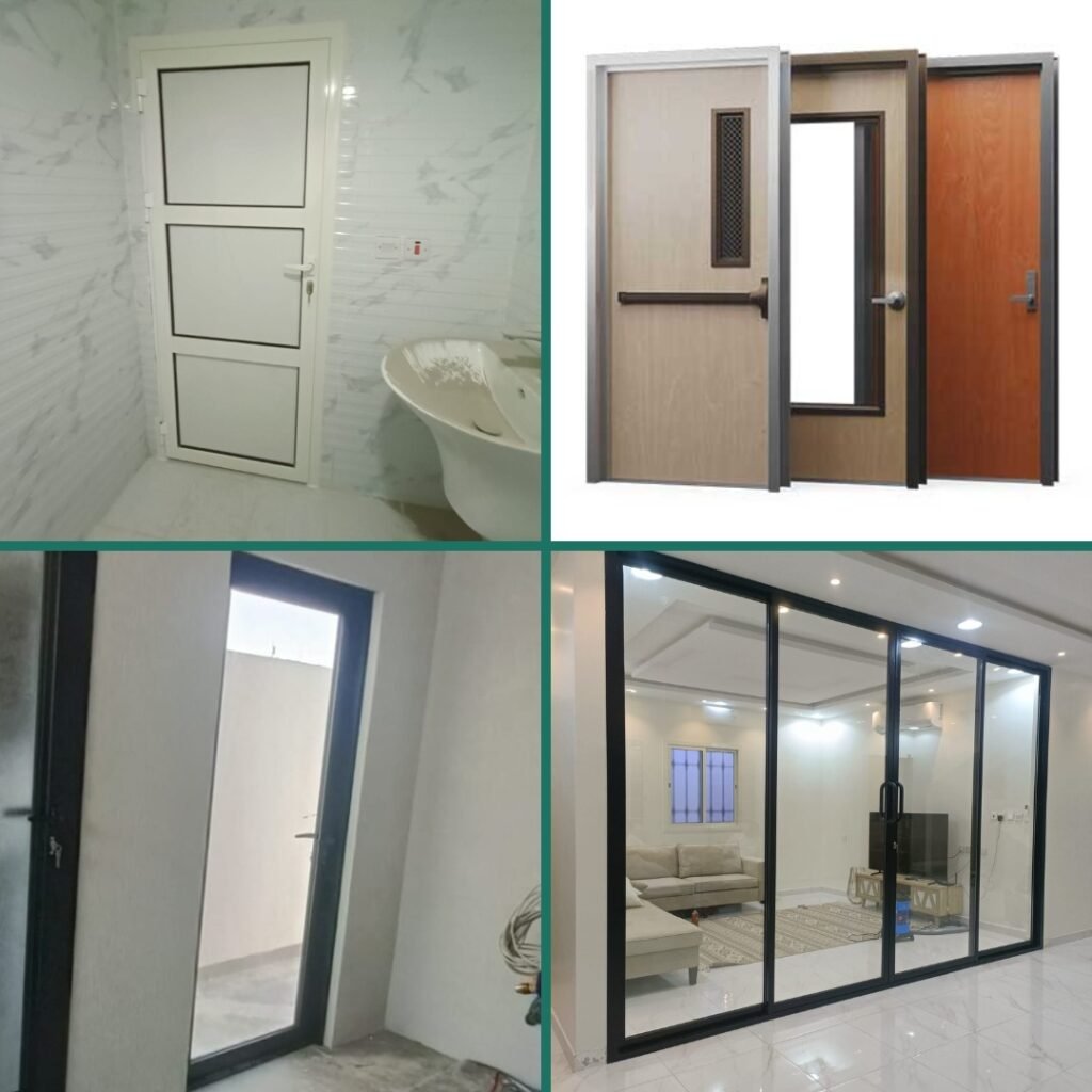 أبواب ألمنيوم أنيقة وعملية للمكاتب والحمامات، مقاومة للرطوبة وسهلة الاستخدام والتنظيف.