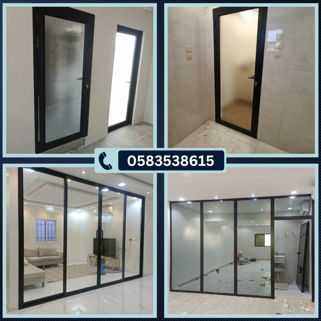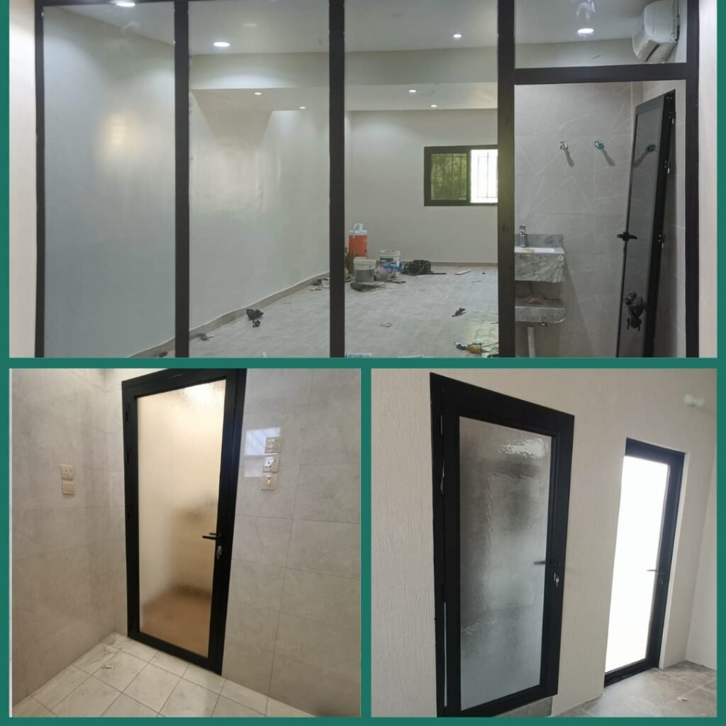 تفصيل المنيوم واجهات زجاج دبل گلاس و شبابيك المنيوم و شبابيك شتر المنيوم و ابواب حمام و ابواب مكتب و ابواب مجلس و تفصيل خيام ملكي زجاج دبل